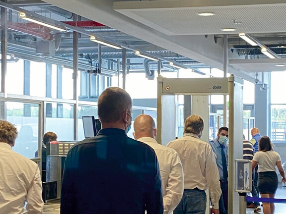Die Inbetriebnahme der neuen zentralen Sicherheitskontrolle hat jedoch zu bisher unbekannten Problemen mit elektrostatischen Entladungen geführt. Die Mitarbeiter haben sich wiederholt über unangenehme Stromschläge beschwert, insbesondere an den Rollbändern, die zum Transport des Gepäcks verwendet werden. Nach intensiver Analyse möglicher Ursachen wurde die niedrige Luftfeuchtigkeit im neuen Gebäude als entscheidender Faktor identifiziert. Messungen ergaben, dass die Dampfbefeuchtung in der Zuluft der Lüftungs- und Klimaanlage mit einer geregelten relativen Luftfeuchtigkeit von 30 Prozent unzureichend war. Erst bei einer konstanten relativen Luftfeuchtigkeit von 40 Prozent oder mehr bildet sich auf schlecht leitenden Materialien wie Gummi oder Kunststoff ein natürlicher, leitfähiger Feuchtigkeitsfilm. Dadurch werden auch die isolierenden Oberflächen der Rollbänder leitfähiger. Durch den Reibungskontakt beim Gepäcktransport und die anschließende Trennung kommt es dann zu einem vollständigen Ladungsaustausch zwischen den Materialien, ohne dass es zu gefährlichen Aufladungen und schmerzhaften Stromschlägen kommt. „Als wir wussten, wie wir die elektrostatischen Probleme lösen können, haben wir uns 2018 entschlossen, eine zusätzliche Luftbefeuchtung nachzurüsten. Die positiven Auswirkungen auf das Wohlbefinden und die Gesundheit waren weitere Argumente dafür“, fasst Thomas Harrer die damalige Situation zusammen.