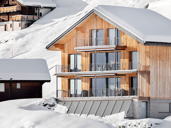 Das Haus auf der Riederalp wurde 2016 fertiggestellt. Der Bauaufwand war enorm, da die Wetterbedingungen dort nur von Juni bis November Bauarbeiten zulassen. Architekt Neidhart legte besonderen Wert auf die Wärmeversorgung durch Solarthermie.