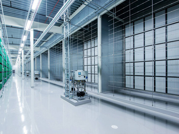 Entsprechend seiner hochmodernen Effizienz nutzt das Rechenzentrum unser energiesparendes Hochdrucksprühsystem und unsere zuverlässigen Verdunstungsbefeuchter, um die Luftfeuchtigkeit in den Datenräumen aufrechtzuerhalten.