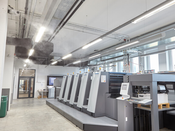 Die größte Herausforderung bei der Luftbefeuchtung im neuen Institutsgebäude ist die Einhaltung der erforderlichen Mindesttoleranzen, insbesondere für die empfindlichen Test- und Passlabore. „Wir freuen uns, dass sich bei der EU-Ausschreibung für das neue Gebäude ein bekanntes Luftbefeuchtungssystem durchgesetzt hat, mit dem wir seit über 20 Jahren positive Erfahrungen gemacht haben“, erklärt Dr. Neufeld. Das Hochdrucksystem DRAABE TurboFogNeo sorgt sowohl im Druckraum als auch in den Laborbereichen für eine konstante optimale Luftfeuchtigkeit. Das Luftbefeuchtungssystem umfasst eine integrierte Wasseraufbereitung, die das Wasser sterilisiert und demineralisiert, um einen hygienischen und sicheren Betrieb zu gewährleisten.