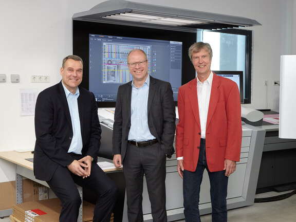 Bild: Fogra Geschäftsführung Dr. Eduard Neufeld (Mitte) und Rainer Pietzsch (rechts) gemeinsam mit Vertriebsleiter DRS Jens Kunde (links) von Condair