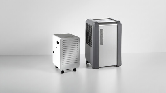 Déshumidificateurs à adsorption compacts et portables dans un boîtier en acier inoxydable durable. Convient aux petits espaces, tels que les laboratoires, les sous-sols, les archives et pour le séchage des constructions.