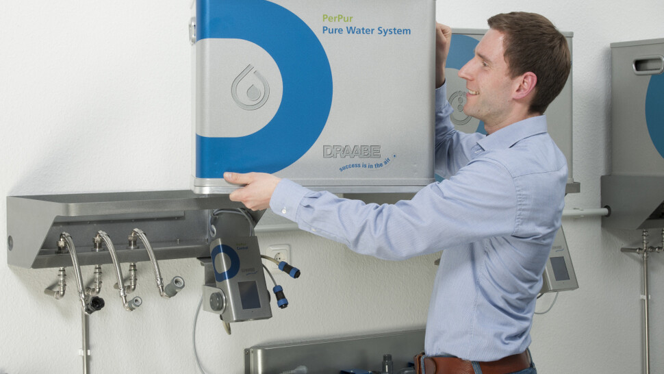 Le concept unique de maintenance complète DRAABE repose sur le principe de conception modulaire des systèmes DRAABE. Le remplacement automatique des conteneurs tous les six mois garantit un fonctionnement hygiénique constant et un système comme neuf, doté de fonctionnalités avancées. Sûr, écologique et économique.