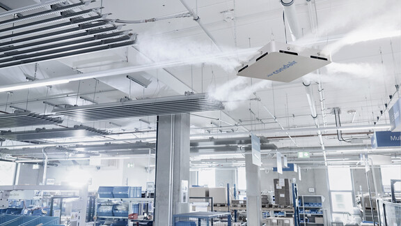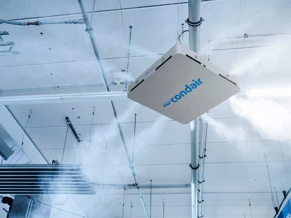 Vita Stream est conçu pour être monté au plafond dans les grandes installations de production high-tech dotées de plafonds élevés. L'humidificateur haute pression génère une brume microfine avec un débit pouvant atteindre 36 litres par heure et présente de faibles coûts énergétiques grâce à sa technologie haute pression à haute efficacité énergétique.