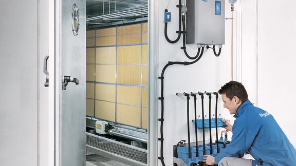Le Condair MC se compose d’un module d’évaporation et d’une unité hydraulique, tous deux situés à l’intérieur de la CTA, ainsi que d’un panneau de commande monté à l’extérieur. Une seule unité peut fournir jusqu’à 360 kg/h d’humidité et environ 245 kW de refroidissement adiabatique, avec une consommation d’énergie minimale.