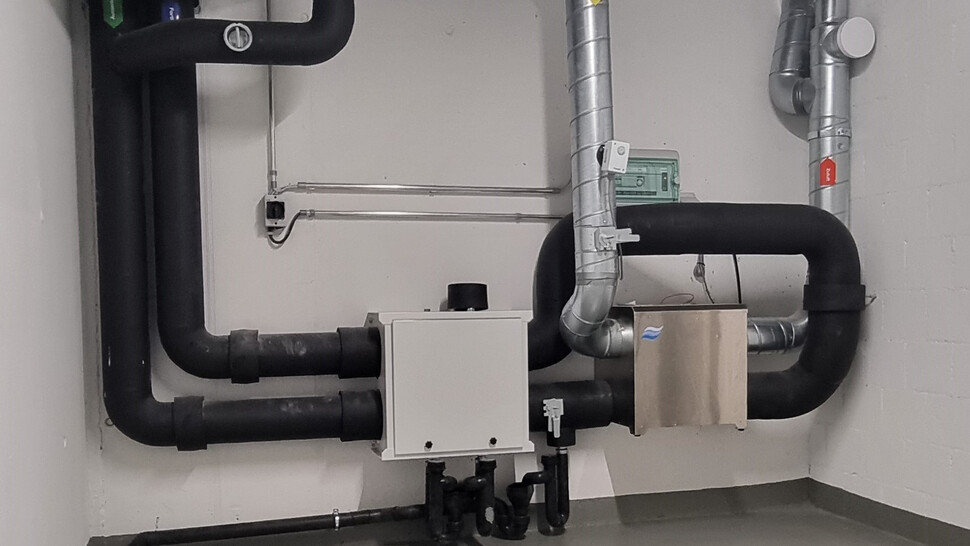 Exemple : pour maintenir un sous-sol/une cave exempt de condensation et de moisissure, nous utilisons un sécheur par adsorption Condair DA combiné à un système de ventilation efficace.