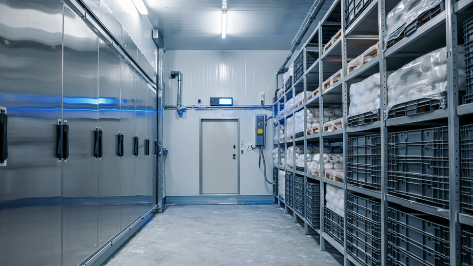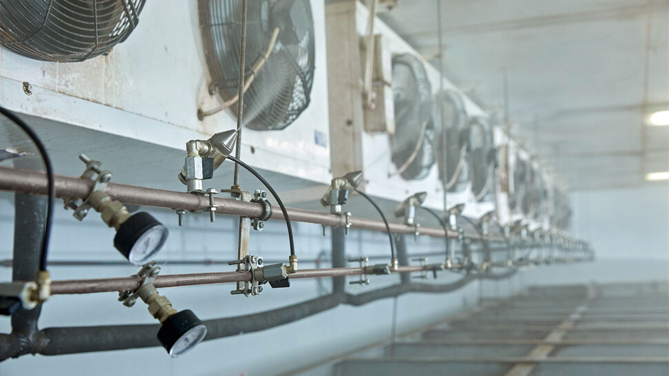 Lorsque des chambres froides et des congélateurs sont utilisés, une humidité excessive peut entraîner la formation de brouillard d'air qui nuit à la visibilité ou la formation de glace sur les surfaces, ce qui cause des problèmes opérationnels et présente un risque pour la santé et la sécurité. Des déshumidificateurs à dessiccant spécialisés peuvent être utilisés pour éliminer l'humidité, maintenir une atmosphère claire et réduire ou éliminer le givrage sur les murs, les plafonds, les allées et les marchandises stockées.
