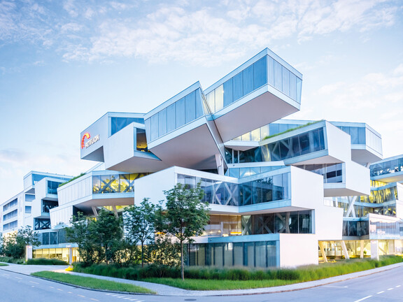 Contrôle de l'humidité dans les environnements de bureauCet imposant bâtiment de style déconstructiviste est le siège social de l'entreprise pharmaceutique Actelion Ltd. Il a été conçu par les célèbres architectes suisses Herzog & de Meuron. Son architecture en forme de poutre s'étend sur six étages et offre des perspectives et des vues inhabituelles, des zones de détente avec des cours et des terrasses, ainsi qu'une atmosphère de travail moderne pour 350 employés. En raison de l'empilement tridimensionnel de la façade, 1 500 dessins détaillés, 2 500 tonnes d'acier et 3,8 kilomètres de poutres en treillis ont été nécessaires pour réaliser le transfert de charge statique. Des humidificateurs hybrides innovants de la série Condair DL assurent un climat ambiant optimal.