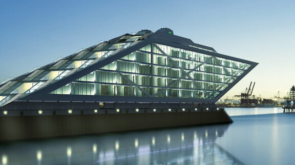 L'emblématique immeuble de bureaux Dockland de Hambourg (2005, BRT Architekten) surplombe l'Elbe de 40 mètres grâce à des structures métalliques inclinées, ce qui lui a valu le prix allemand de la construction métallique 2006. Ses 9 000 m² d'espaces intérieurs entièrement vitrés et sa terrasse publique sur le toit offrent une vue spectaculaire sur le port.