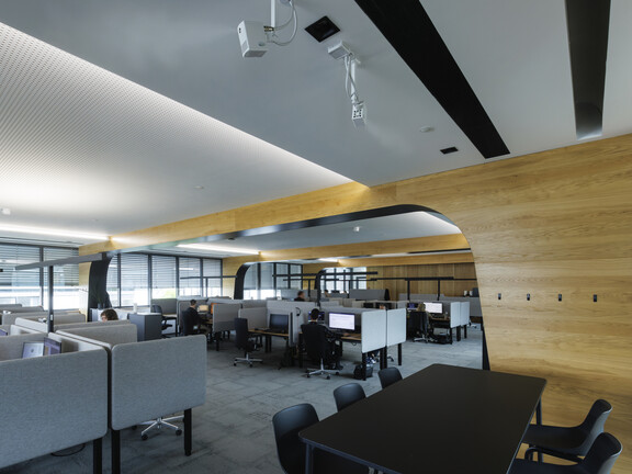 Pour le nouveau bâtiment administratif, inauguré en 2022, l'humidification a été prévue dès le départ sur la base des expériences positives réalisées dans les espaces de vente et le centre d'appels. Le bâtiment de quatre étages comprend des bureaux en open space pouvant accueillir plus de 300 employés du service clientèle, ainsi que de nombreuses salles de réunion. L'aménagement intérieur est clairement axé sur la qualité optimale du lieu de travail pour les employés : des atriums verts et lumineux, des postes de travail ergonomiques assis-debout, des revêtements de sol insonorisants et des cloisons acoustiques créent un environnement de travail agréable. L'humidification directe en ambiance complète ce concept : « Nous recevons depuis de nombreuses années des commentaires très positifs de la part des employés de notre centre d'appels. Il était donc essentiel pour nous de garantir une humidité relative optimale d'au moins 40 % tout au long de l'année dans le nouveau bâtiment », explique Alexander Schell. L'air trop sec peut entraîner des problèmes, en particulier sur les lieux de travail où l'on passe beaucoup de temps devant un écran : troubles de la voix, enrouement, irritation des yeux et affaiblissement du système immunitaire des voies respiratoires sont des conséquences courantes d'une humidité insuffisante.