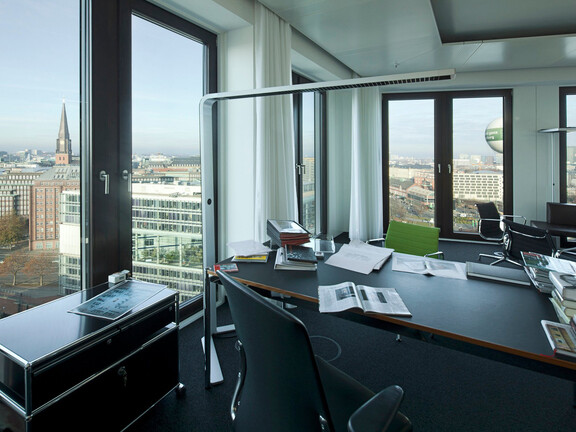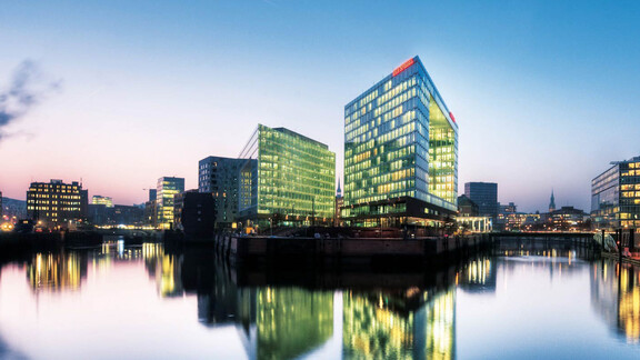Dans la partie est du quartier HafenCity de Hambourg, dans la zone Ericusspitze au bord de l'eau, se trouve le nouveau siège social du groupe de médias SPIEGEL. Le bâtiment de 13 étages en acier, verre et béton fait partie d'un ensemble de deux bâtiments, qui ont été réalisés selon les plans de l'architecte danois Henning Larsen. La forme de la façade en verre symbolise un cadre autour des 1 100 employés du Spiegel qui travaillent ici.